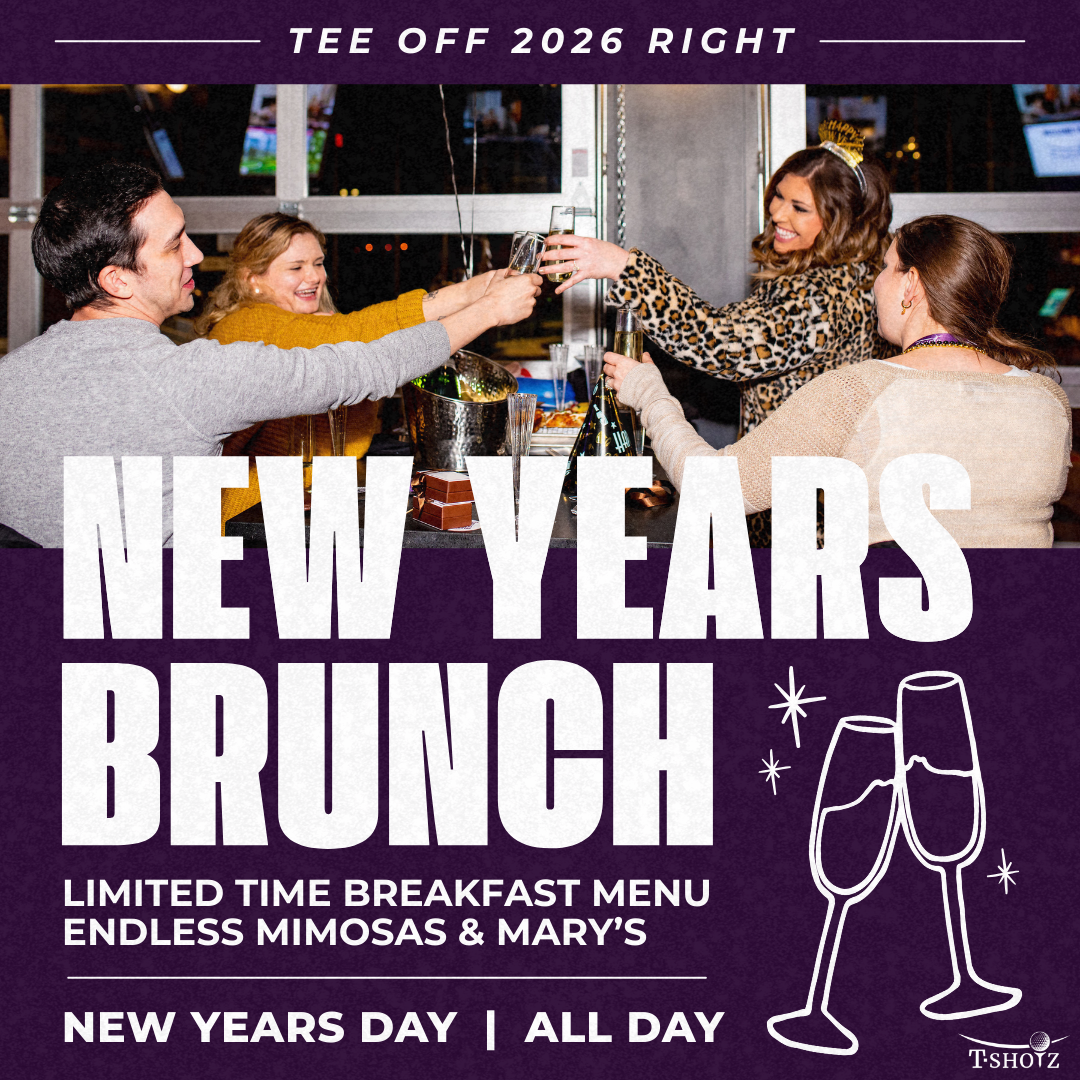 Tee off 2026 right with us at T-Shotz! Enjoy a limited time brunch menu featuring twists on classic combos like Chicken and Funnel Fries. And continue your New Years celebration with endless Mimosas and Bloody Marys when you dine in at the bays or in the bar on New Years Day.